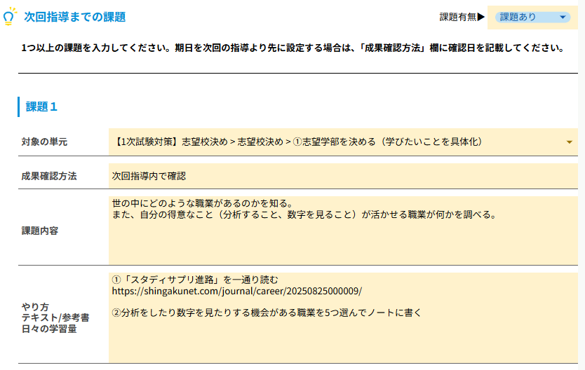 生徒様が志望校を決めている場合でも、将来の夢や現在の学習状況に対して適切でないと判断した場合は、教師からアドバイスを行ってください。